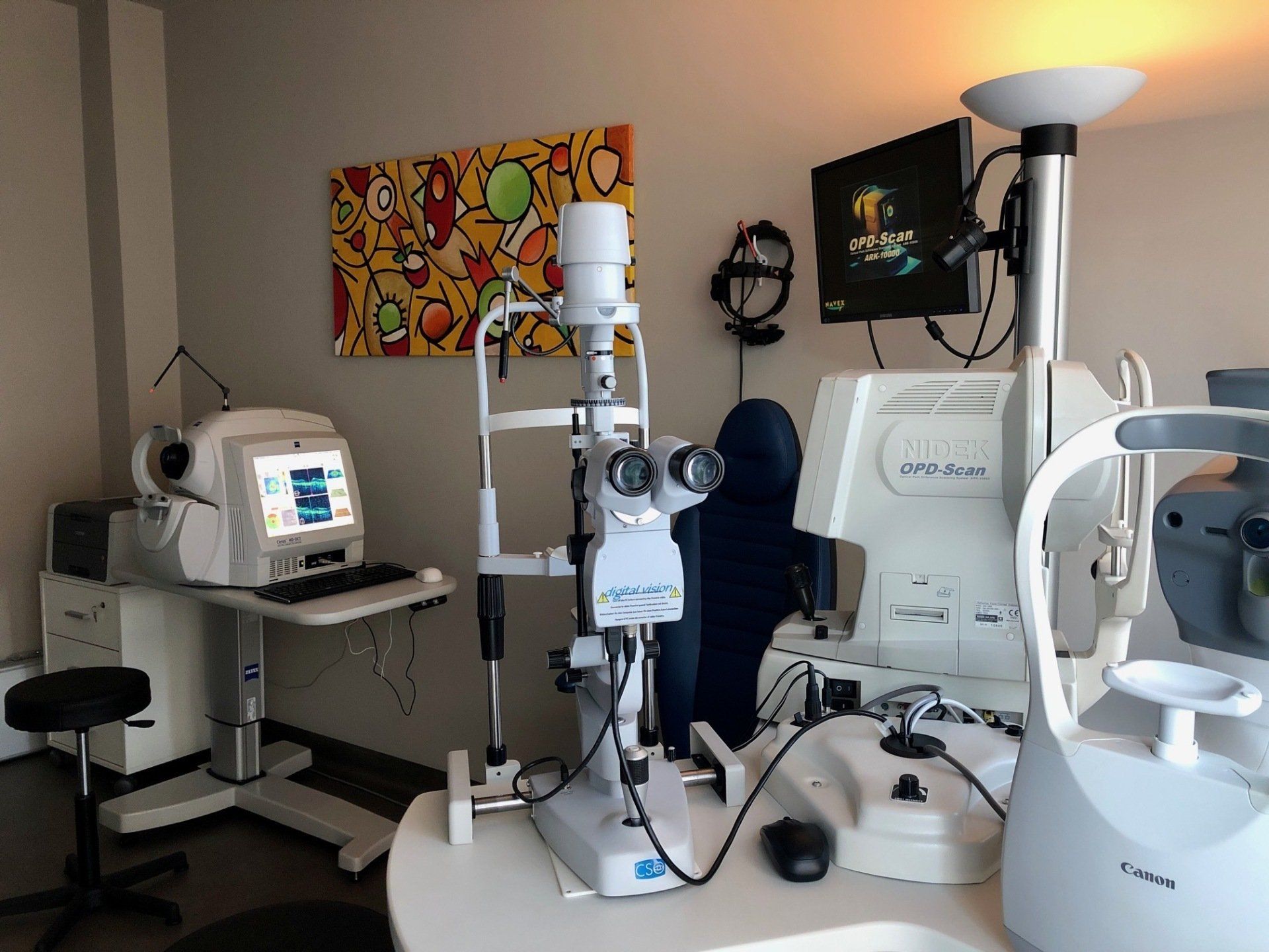 Il topografo corneale (Nidek OPD-Scan) è uno strumento utile nella diagnosi e nel follow-up del cheratocono, nella chirurgia refrattiva e in contattologia (ad es. per valutare l’effetto delle lenti a contatto sulla cornea).